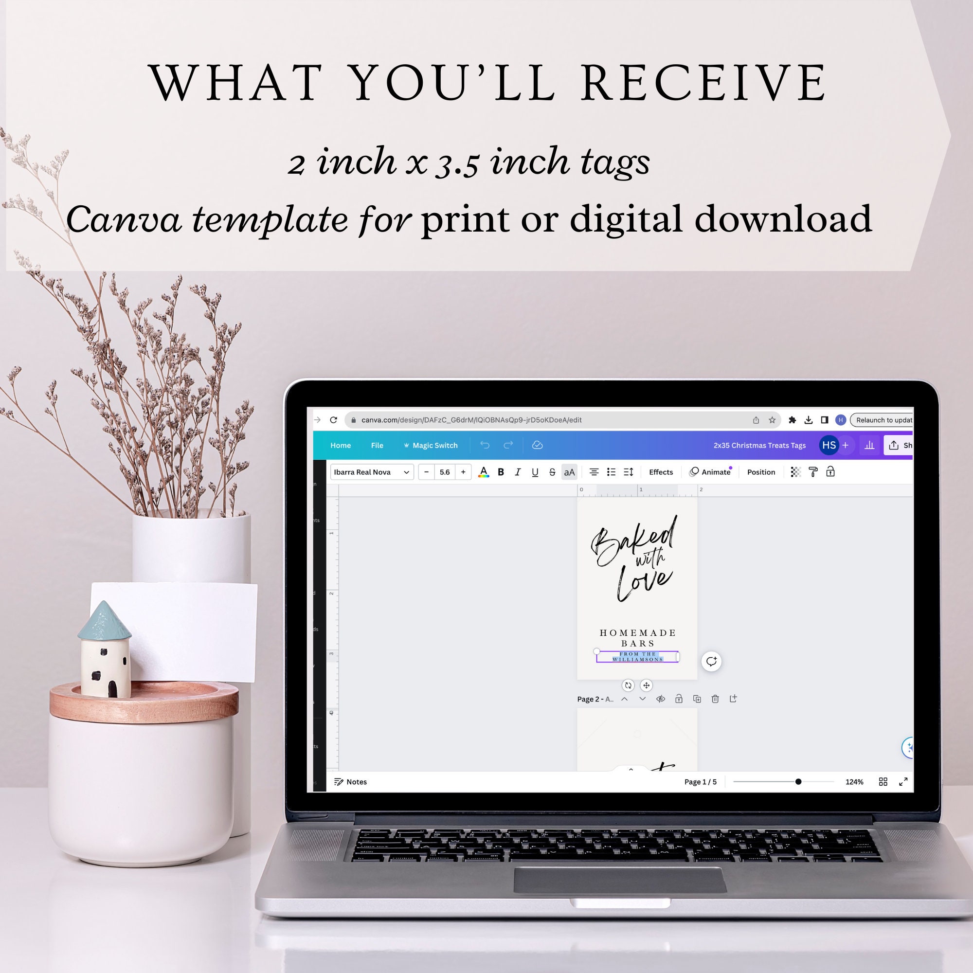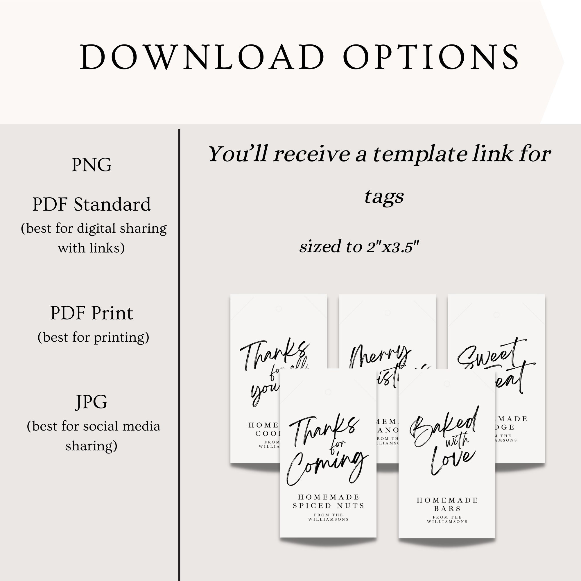 Our Christmas Gift Tag template is absolutely perfect for your Christmas treat gifts. Purchase it and print as many times as you'd like- for your mail carrier, teacher, babysitter, neighbor, and more. It features a beige background with dark gray font- easily editable to any color you choose! The typeface is classical and great for co-ed gifting. It's easy to customize with our instant download feature, but if you're new to editable stationary, it comes with 9 free tutorial videos! You’ll receive a PDF to a template link for a tag template sized to 2" x 3.5"