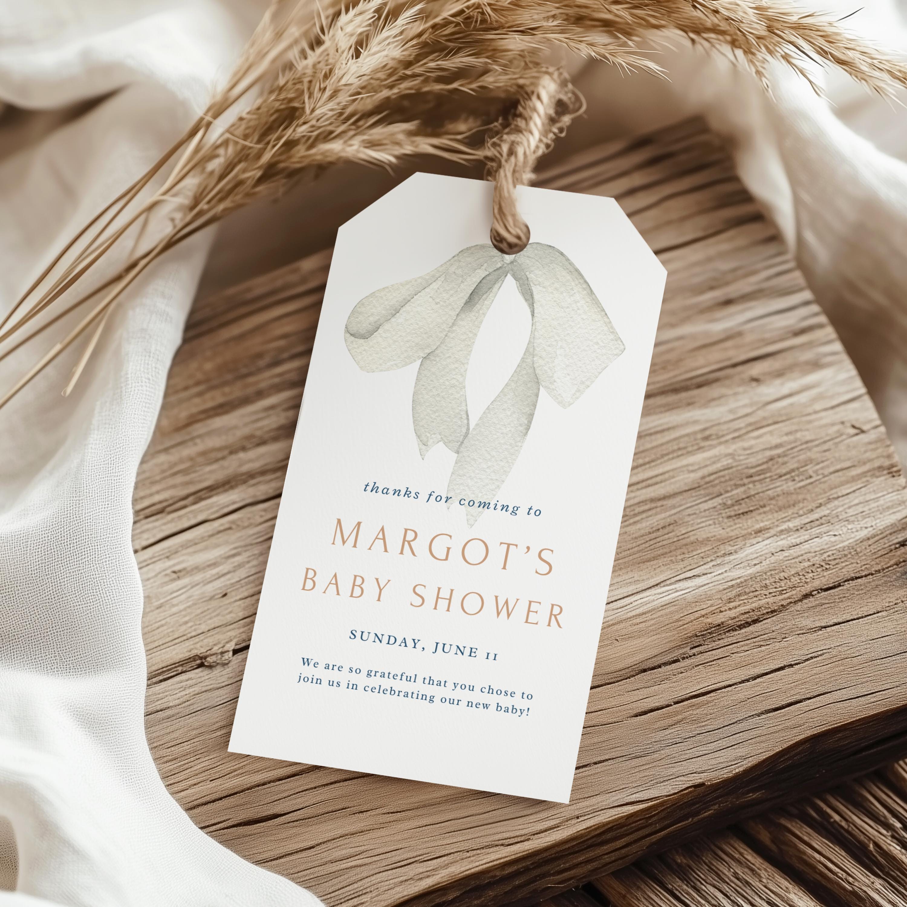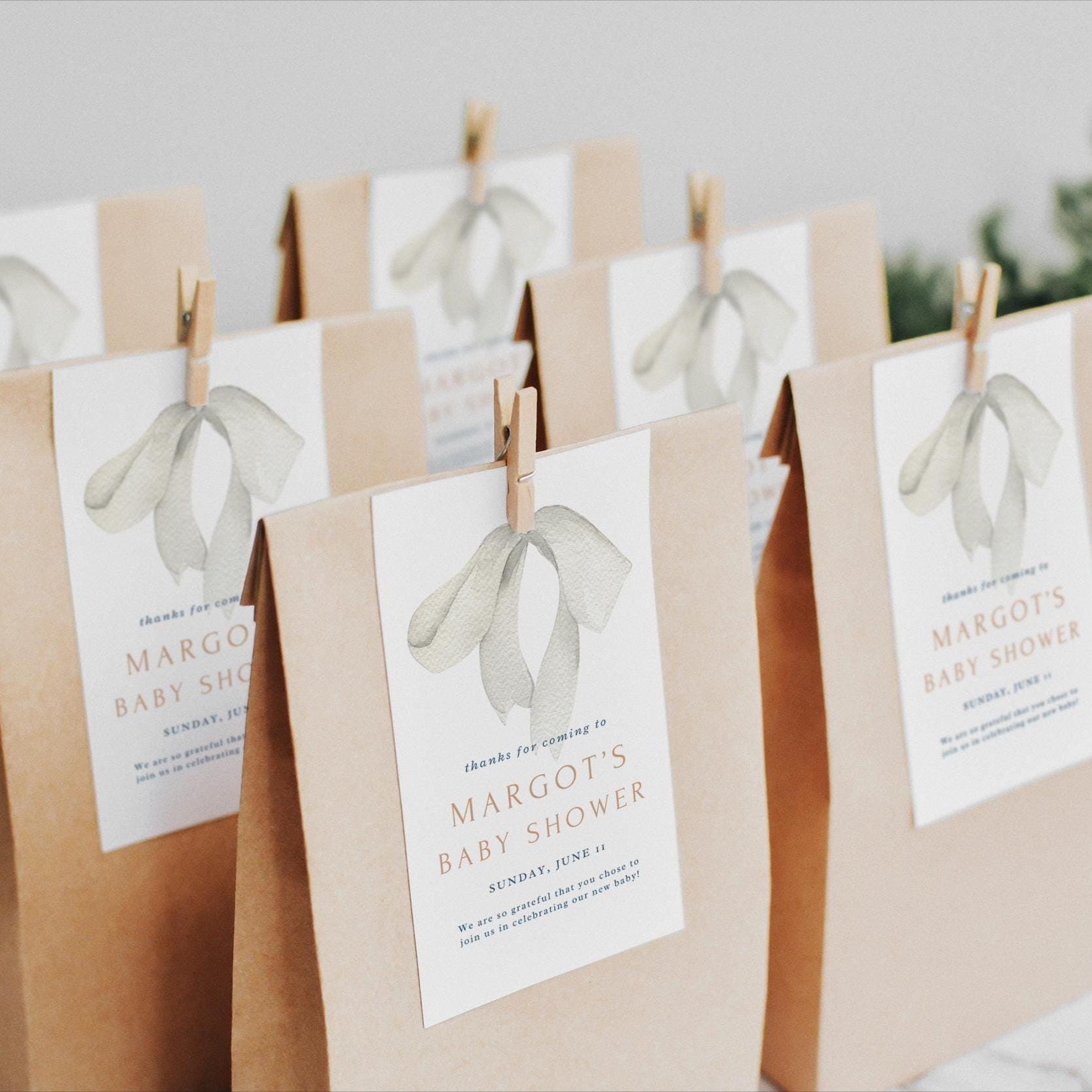 Add the sweetest finishing touch to your baby shower sprinkle with our Vintage Bow Favor Tag Template! This classic, trendy, oh-so-cute design features a soft creamy white bow theme with vintage ribbon charm — perfect whether you're celebrating a baby boy, a girl, or keeping things gender neutral.