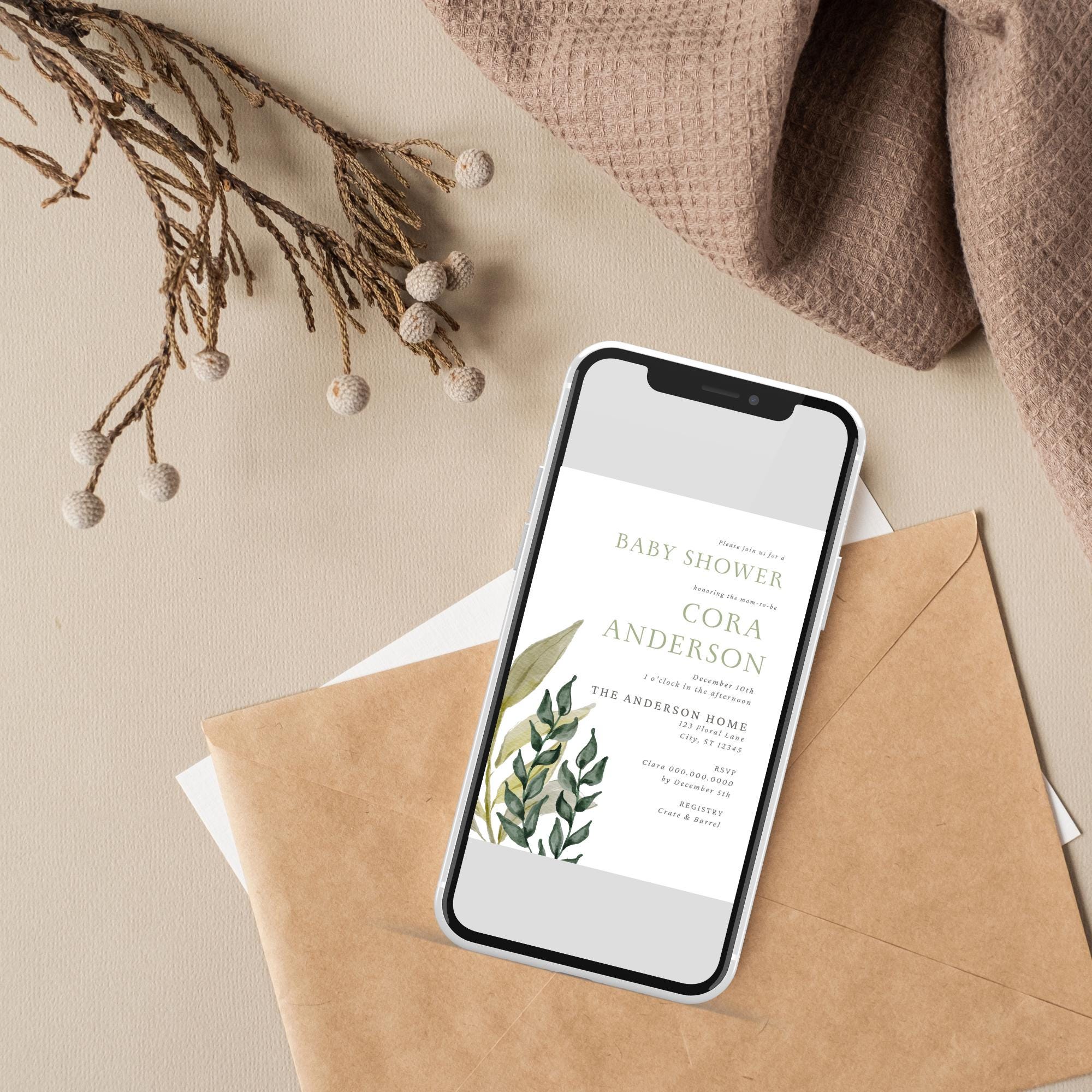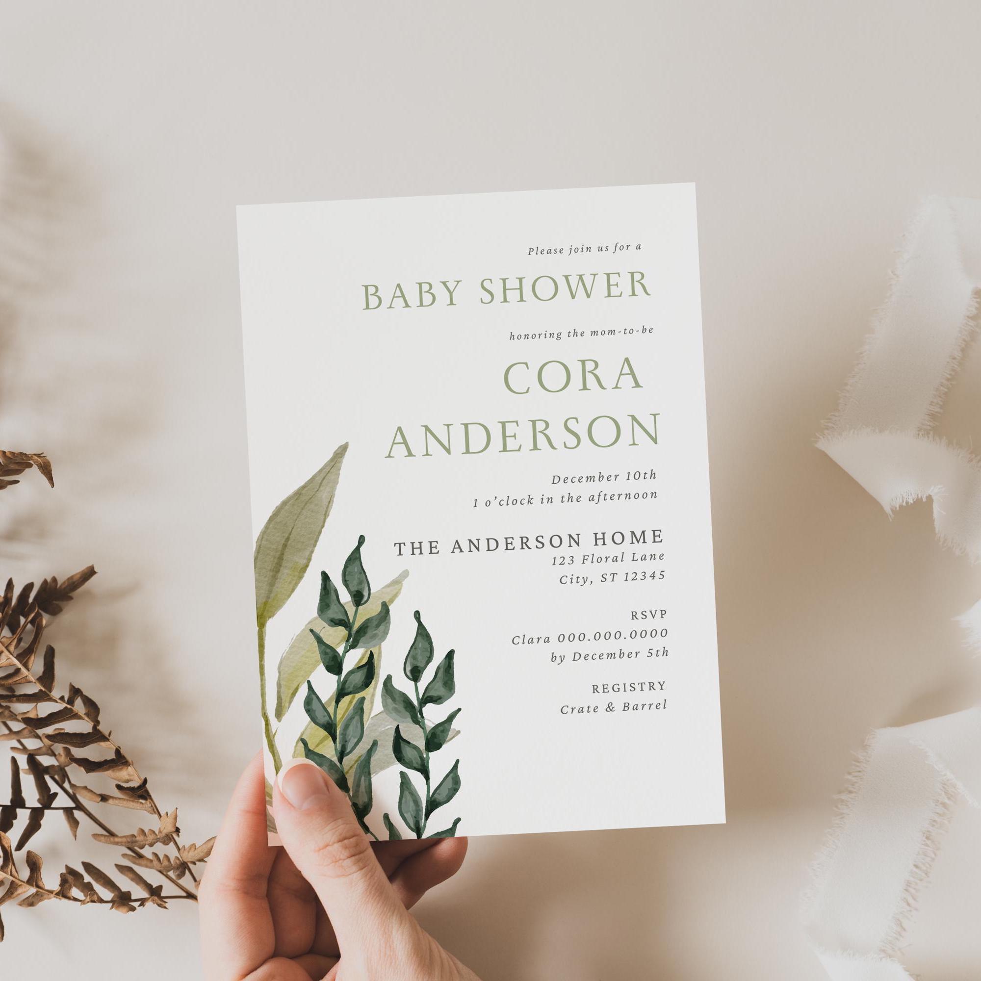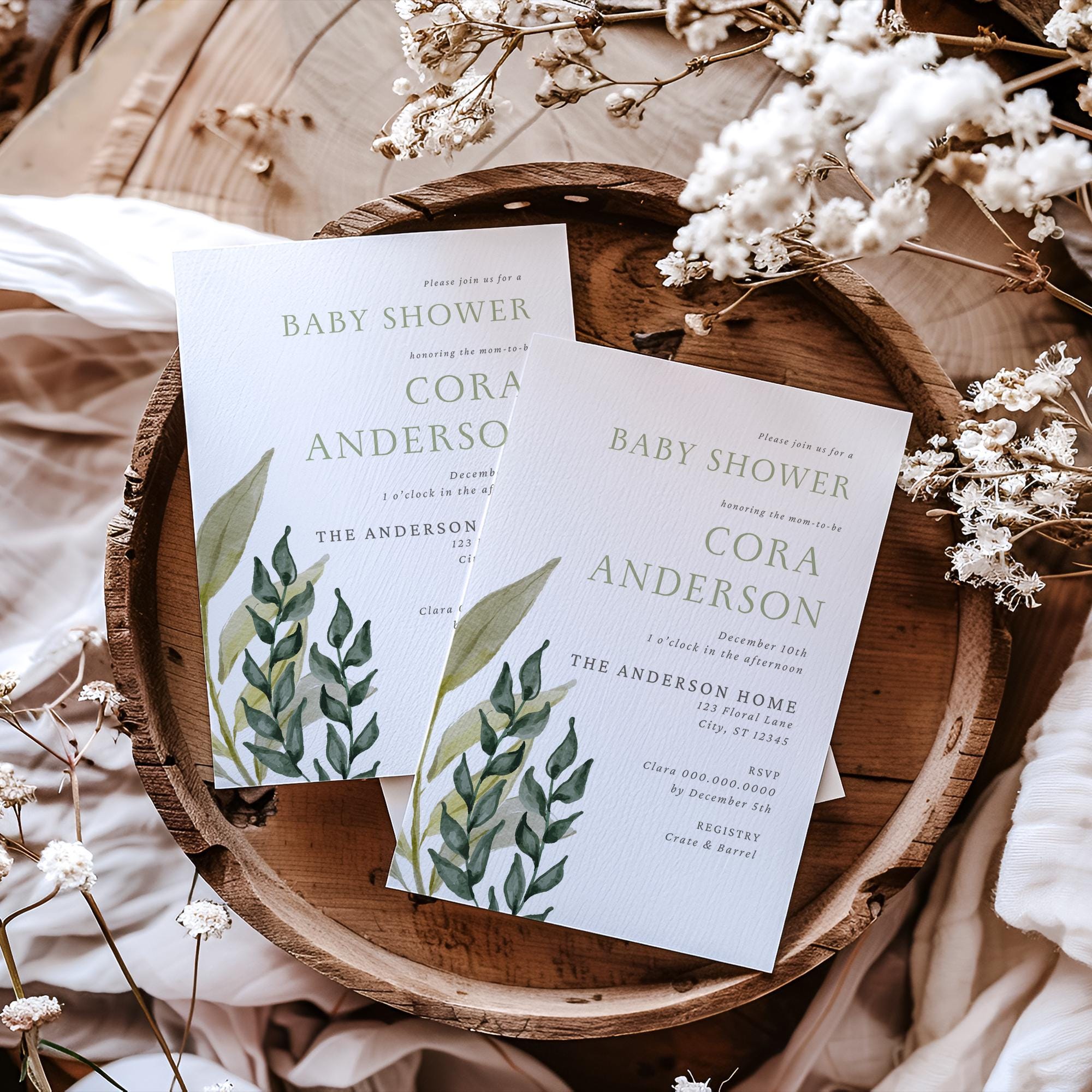 Celebrate your baby shower or sprinkle with our Greenery Baby Shower Invitation! This charming baby shower invite features a beautiful watercolor foliage design that perfectly captures the essence of Christmas winter botanicals, making it ideal for any theme, whether you’re welcoming a girl or boy. Our simple, cute, and trendy design can be easily customized with our DIY editable Canva template, allowing you to create a one-of-a-kind invite in no time. Plus, with instant download options, you can print it at home and get started on your celebration right away! Perfect for those who love boho style, this greenery design is sure to impress your guests and set the tone for a memorable baby shower. This template is sized to 5x7 and comes with 9 editing tutorial videos.