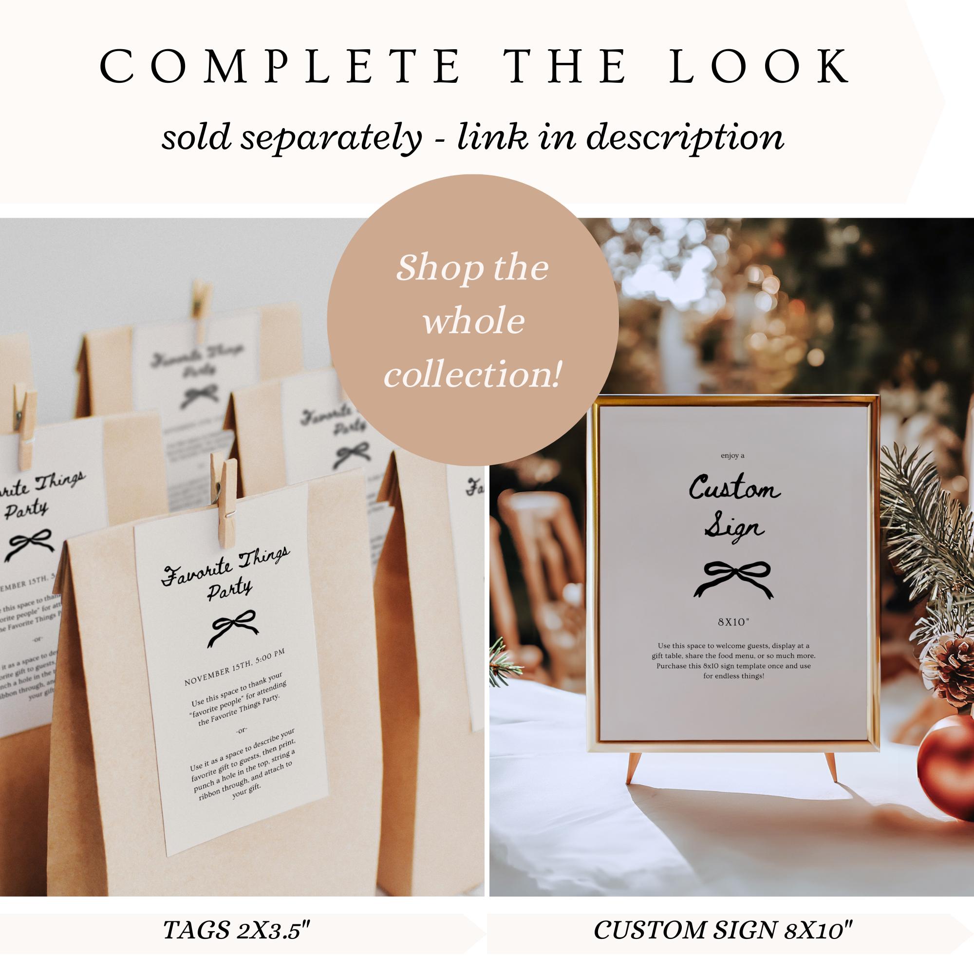 Celebrate this holiday with our Favorite Things Party Invitation. These delightful invitations combine the charm of ribbon and bow designs, perfect for a cozy girls' night in or a fun Valentine's Day gift exchange. With our editable template available for digital download, you can easily personalize your invites for a chic ladies brunch, elegant dinner party, or a relaxed Prosecco and PJs gathering. Whether you choose to print them or send them as evites or text messages, these invitations will set the tone for a night full of laughter and joy. Invitation is sized to 5x7" and can also be used as an electronic invite. It includes 9 editing tutorial videos.
