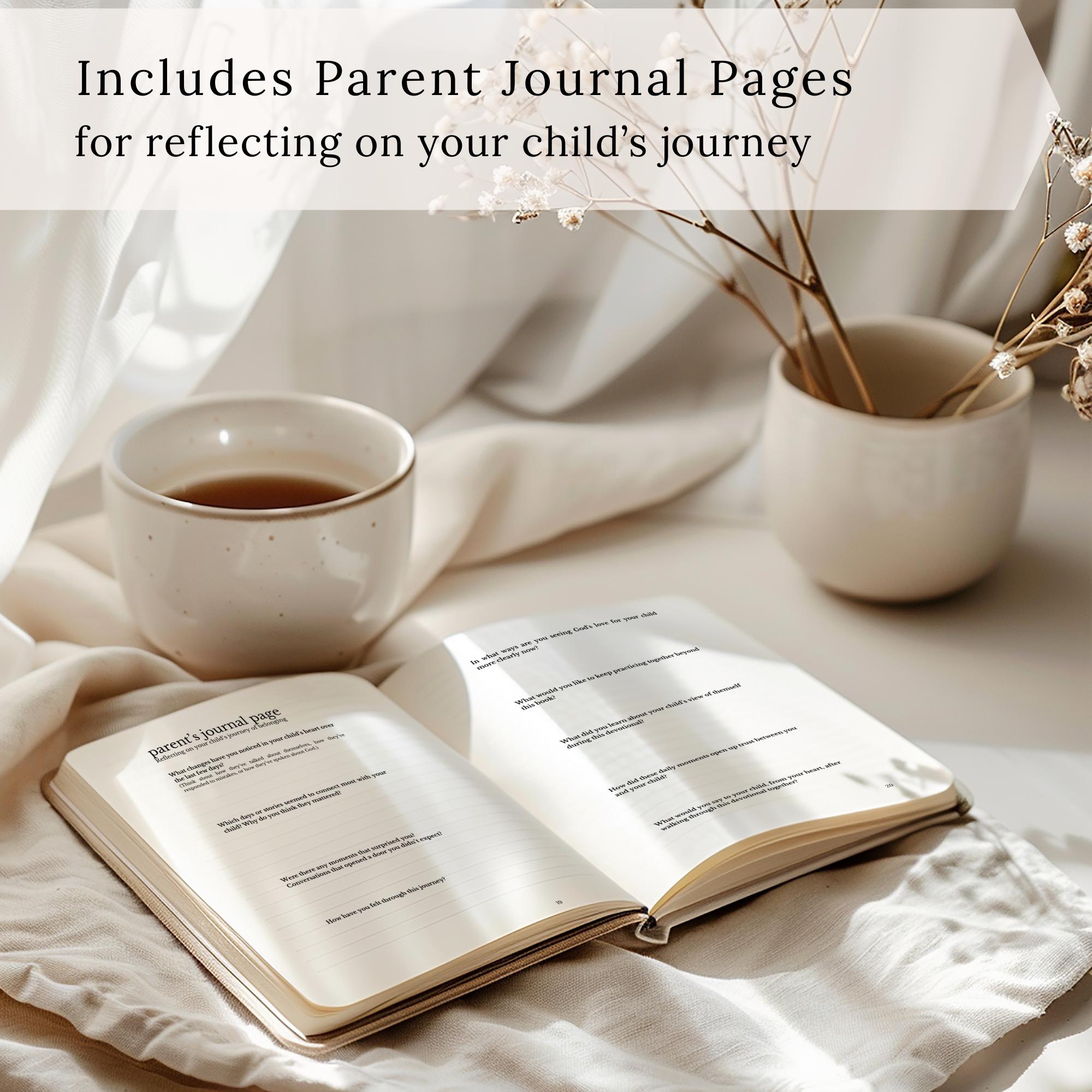 ✨ Parent Journal Pages – Reflection sections for parents to track their child’s growth, emotions, and spiritual journey.