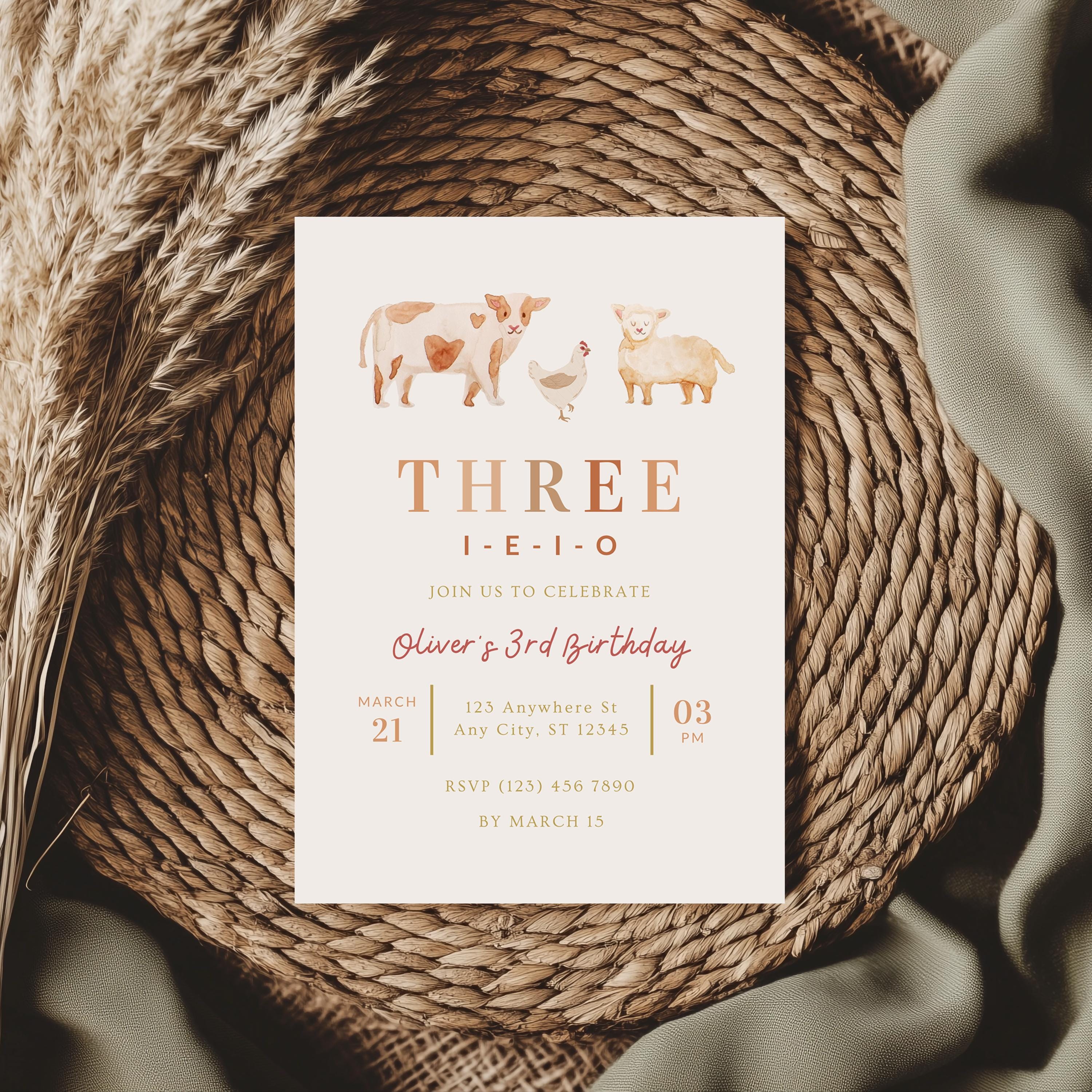 Celebrate your little one's third birthday with a delightful farm-themed party using the Three I E I O Invitation. This charming invite is perfect for a barnyard celebration, featuring animal designs and a whimsical farm theme that will surely impress your guests. With instant download available, planning your girl's farm birthday party has never been easier. This invitation is sized to 5"x7" and is easily customizable on Canva. If you're new to editable stationary, it comes with 9 free tutorial videos!