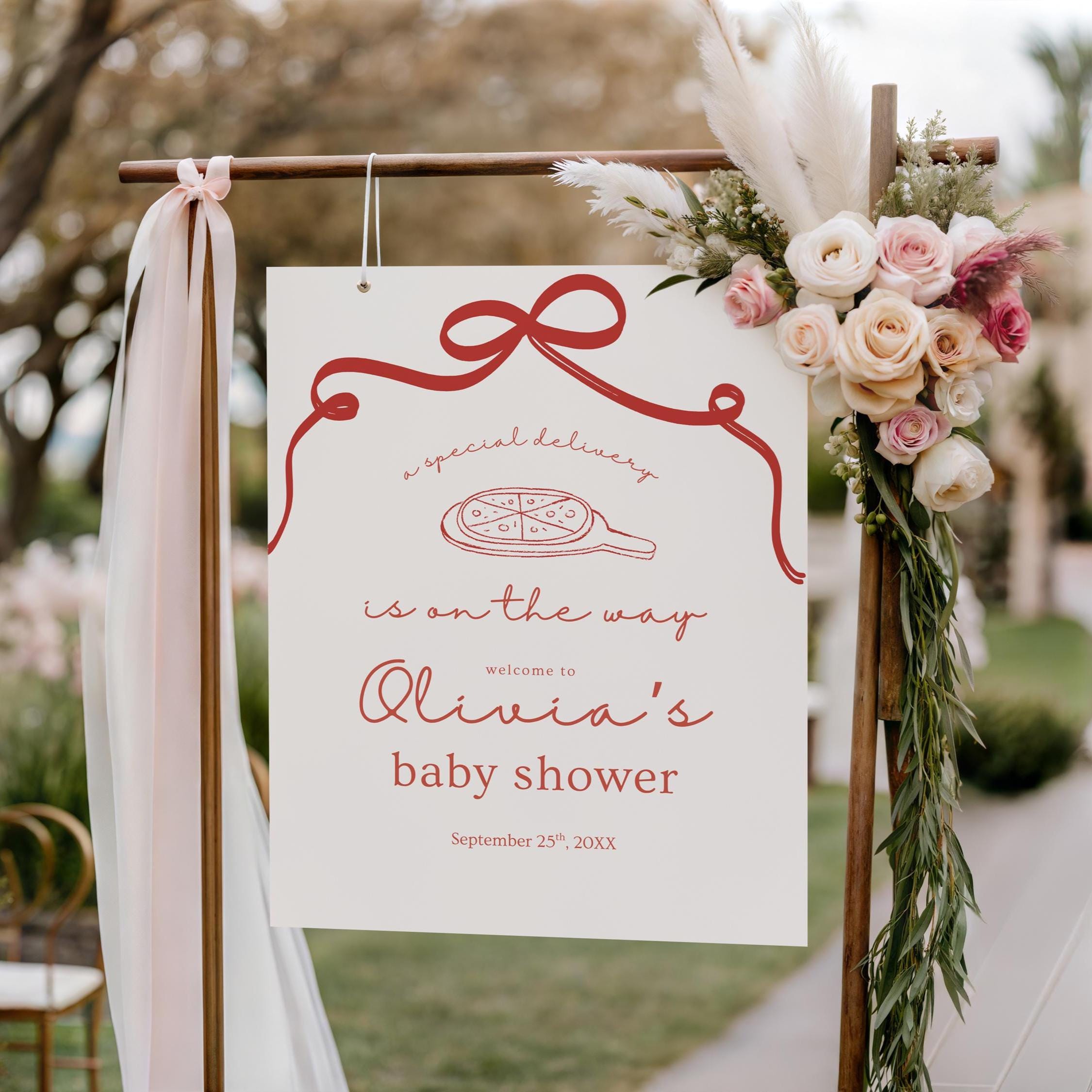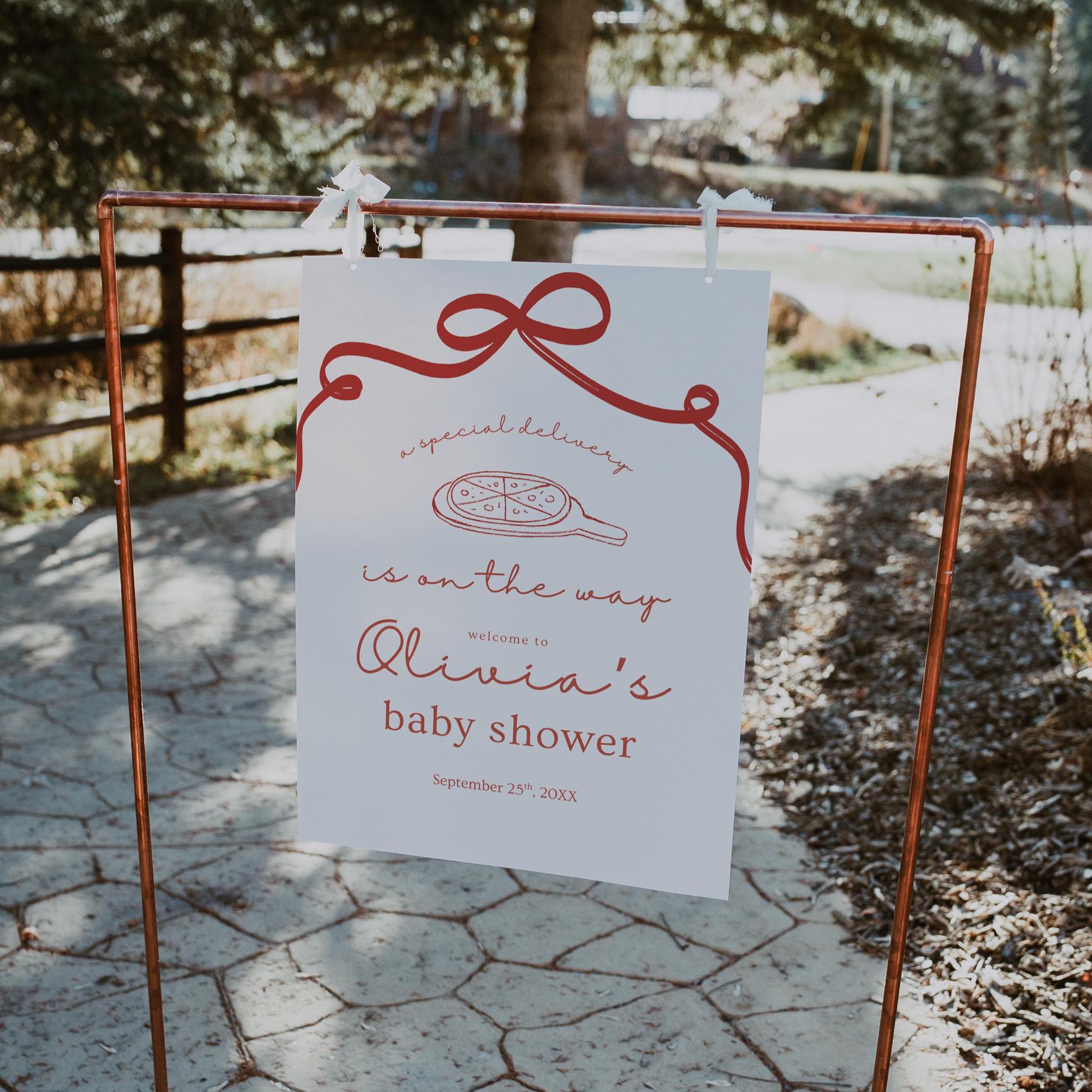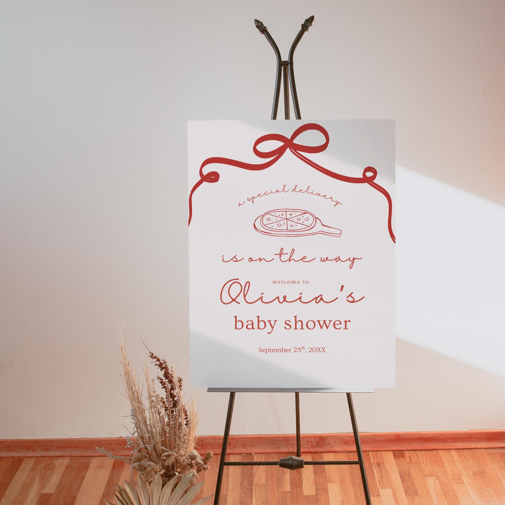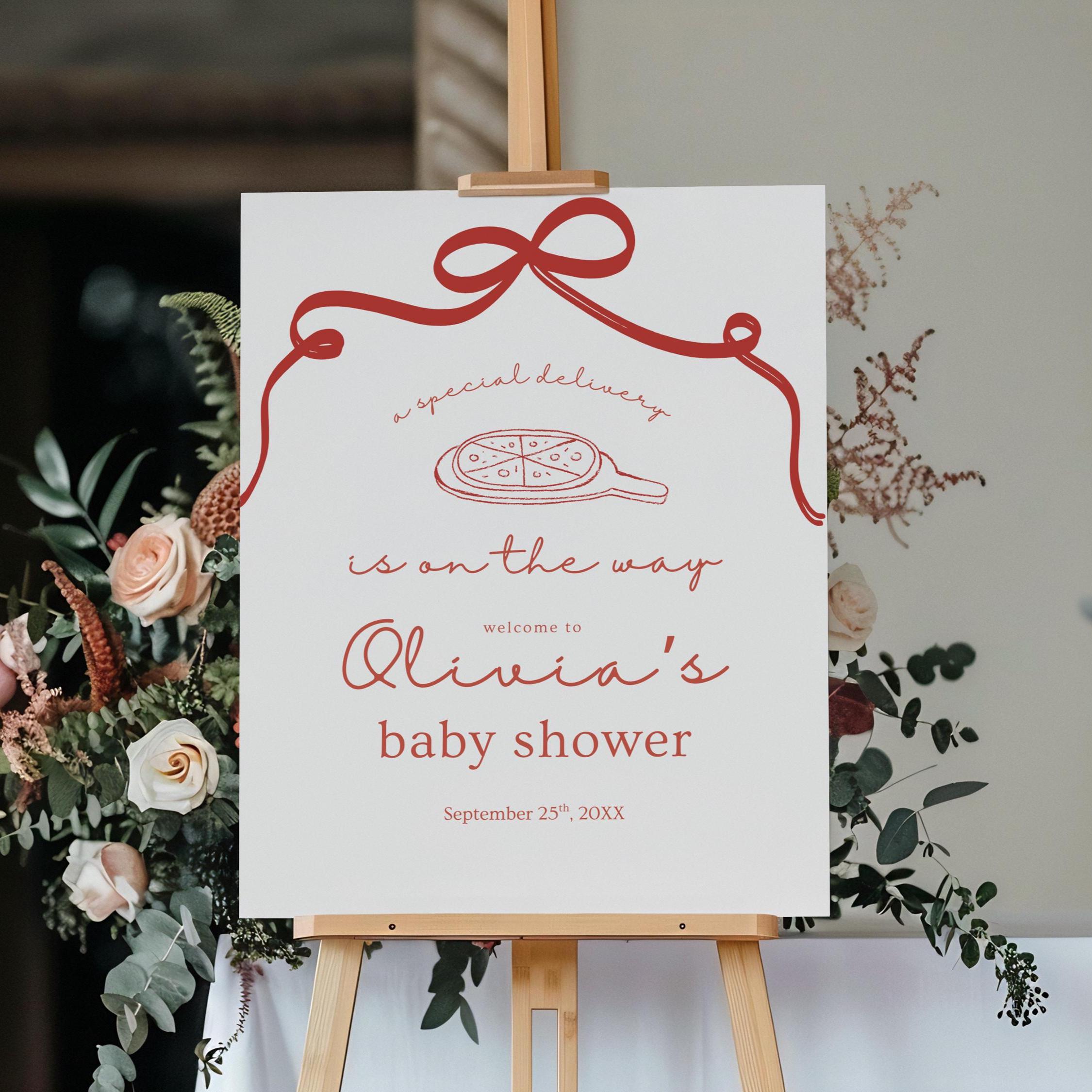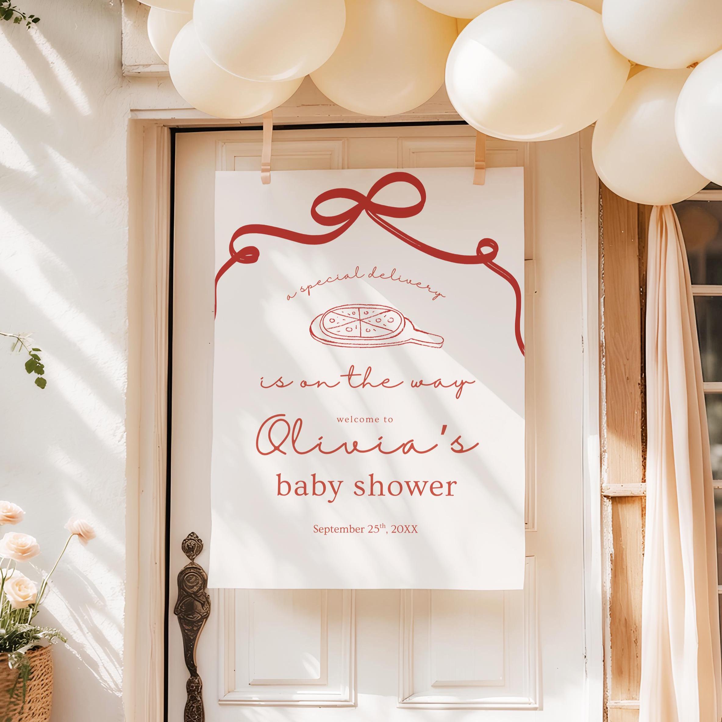 Celebrate your little one with charm and whimsy using this editable baby shower welcome sign featuring an adorable pizza theme and playful script. Whether you’re decorating your front door, party entrance, or photo backdrop, this sign adds the perfect touch of personality to your celebration.