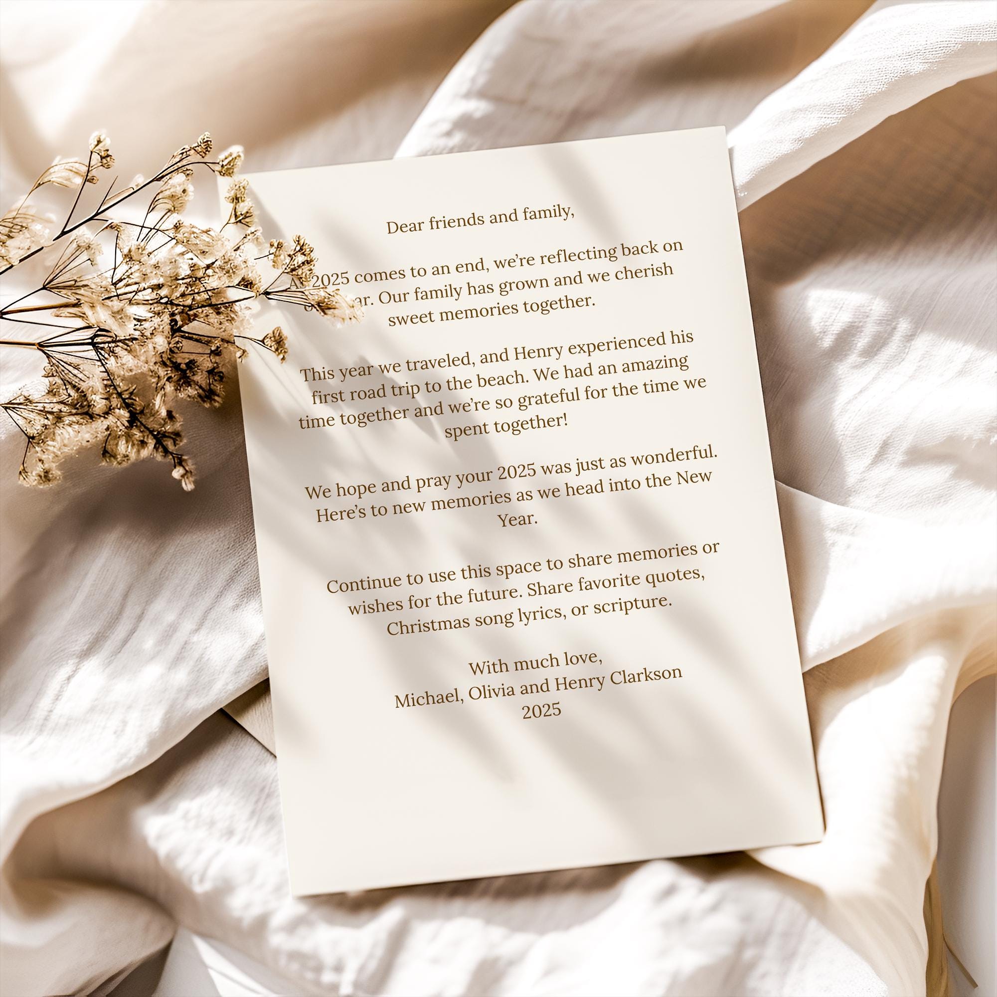 This 5x7 Merry Christmas card is an instant digital download you can personalize in minutes. Add your photo, update your family names, and edit your message right in Canva — no design experience needed! Perfect for printing at home or sending to your favorite print shop.