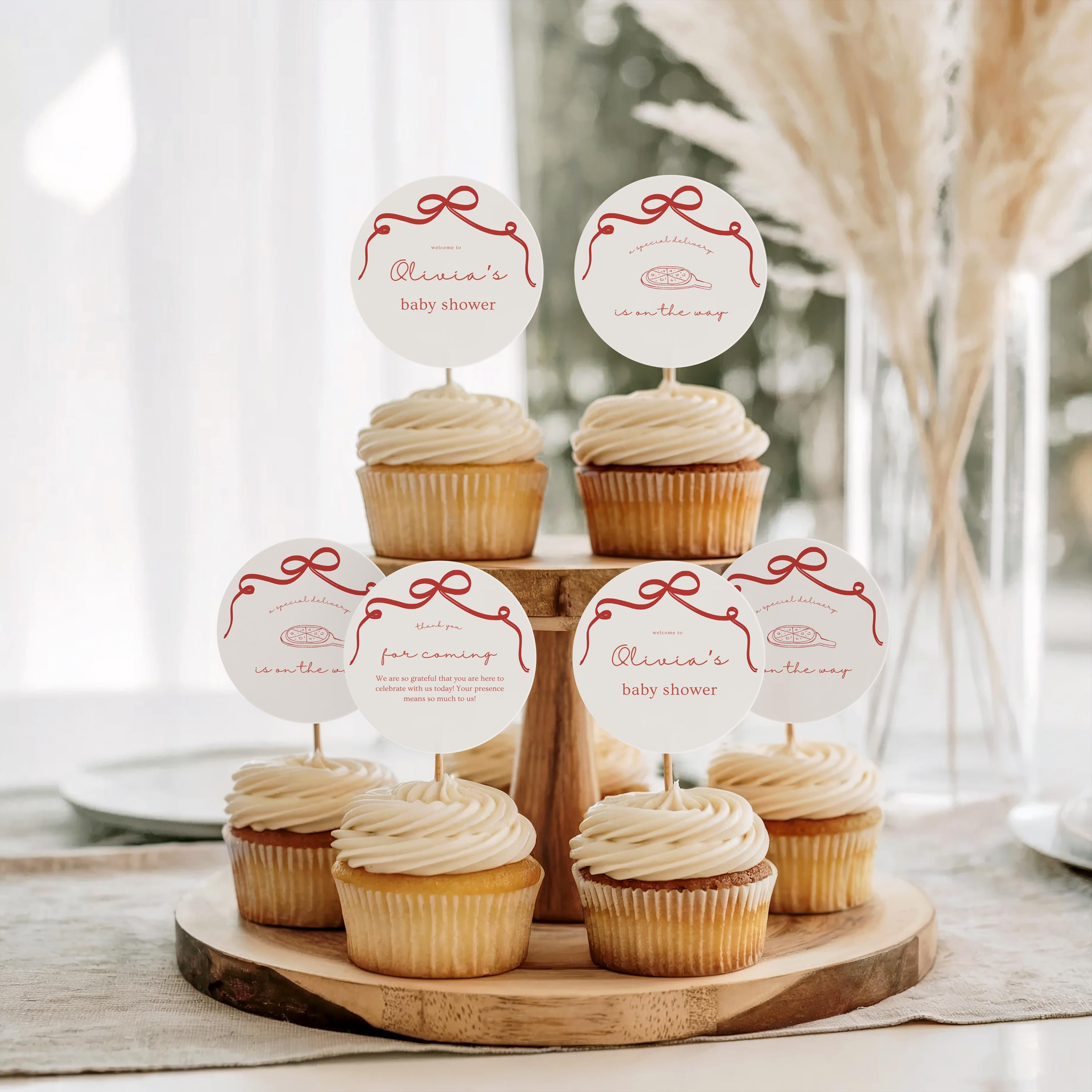 Make your baby shower extra cute with these pizza baby shower cupcake toppers! Perfect for a pizza baby shower or any Italian party as decor, these adorable toppers come in three different designs featuring charming a hand-drawn pizza and a beautiful red bow. Sized at 2x2 inches (square shape, but with a gray circle cut line) with an easy-to-edit customizable option, they are a fun addition to your pizza-themed party or birthday party decor. With bright colors and a festive red bow, these pizza cupcake toppers will bring a slice of joy to your special delivery. If you're new to editable stationary, this comes with 9 editing tutorial videos.