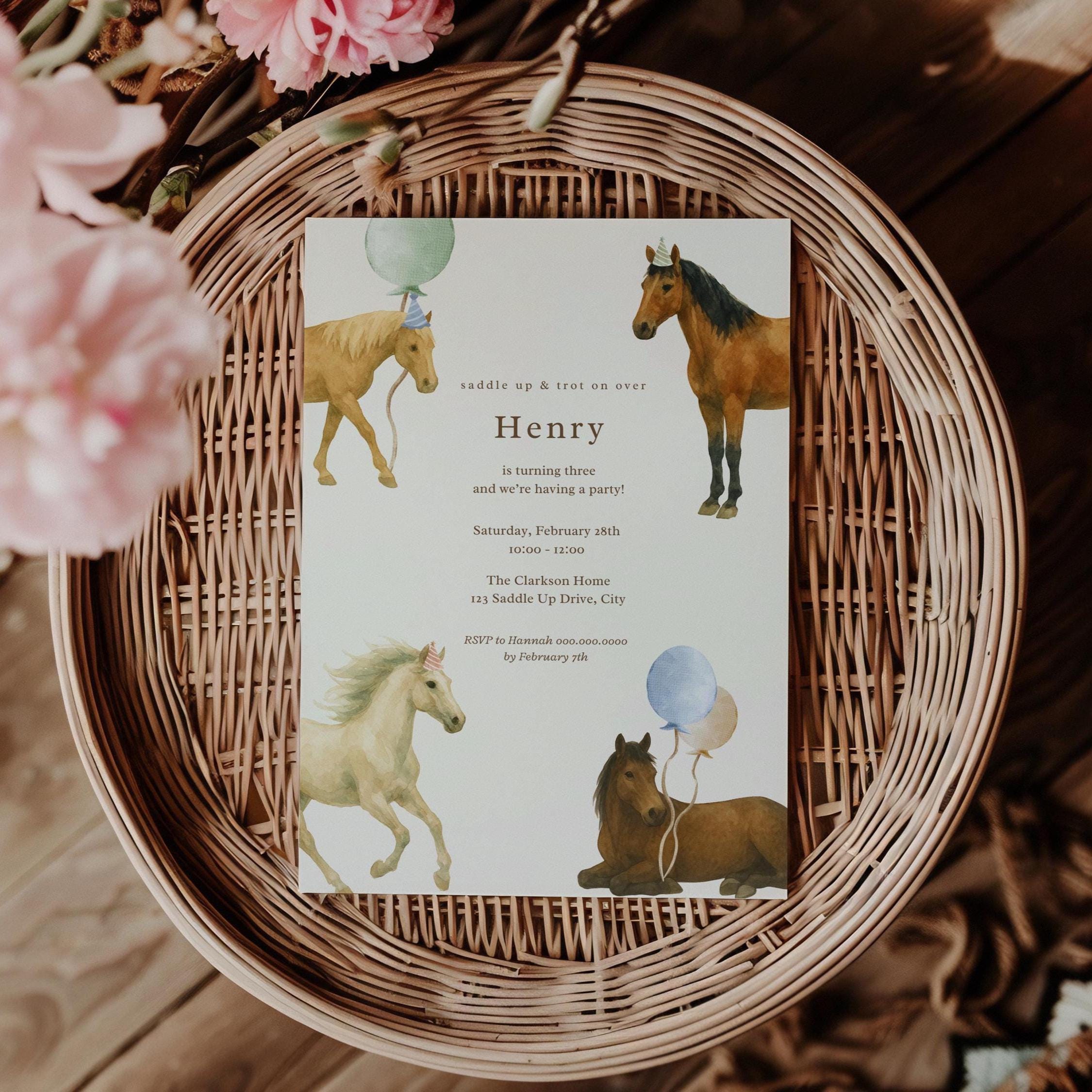 Celebrate your little one with a sweet and timeless horse birthday invitation, perfect for pony parties, farm themes, and animal-loving kids 🤍