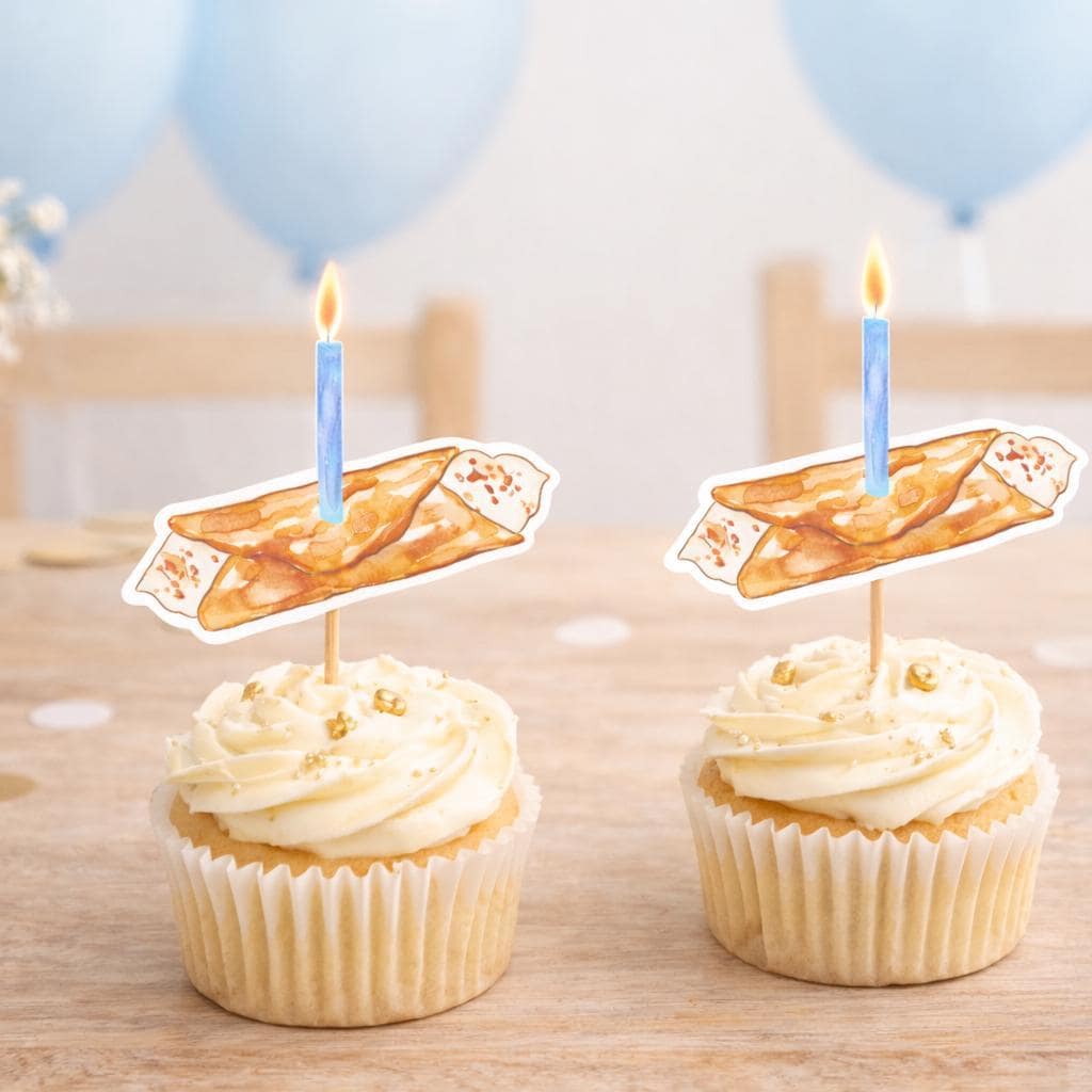 Add the sweetest finishing touch to your celebration with these Holy Cannoli Cupcake Topper Templates. Featuring hand-painted watercolor cannoli topped with a candle, these toppers are playful, charming, and perfect for Italian-inspired birthday parties and first birthday celebrations.